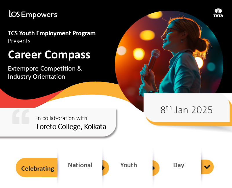 To celebrate National Youth Day 2025, TCS CSR Youth Employment Programme, in collaboration with the Placement Cell of Loreto College, Kolkata, conducted an extempore competition and sessions to equip students with relevant skills and industry insights on January 8, 2025. The event aimed at enhancing the career prospects of students. The session began with a discussion on various career opportunities, contrasting the job prospects in the corporate sector with those in the government sector. The speakers highlighted that while government jobs offer stability, corporate jobs provide more dynamic growth and competitive compensation, depending on the industry and skills.