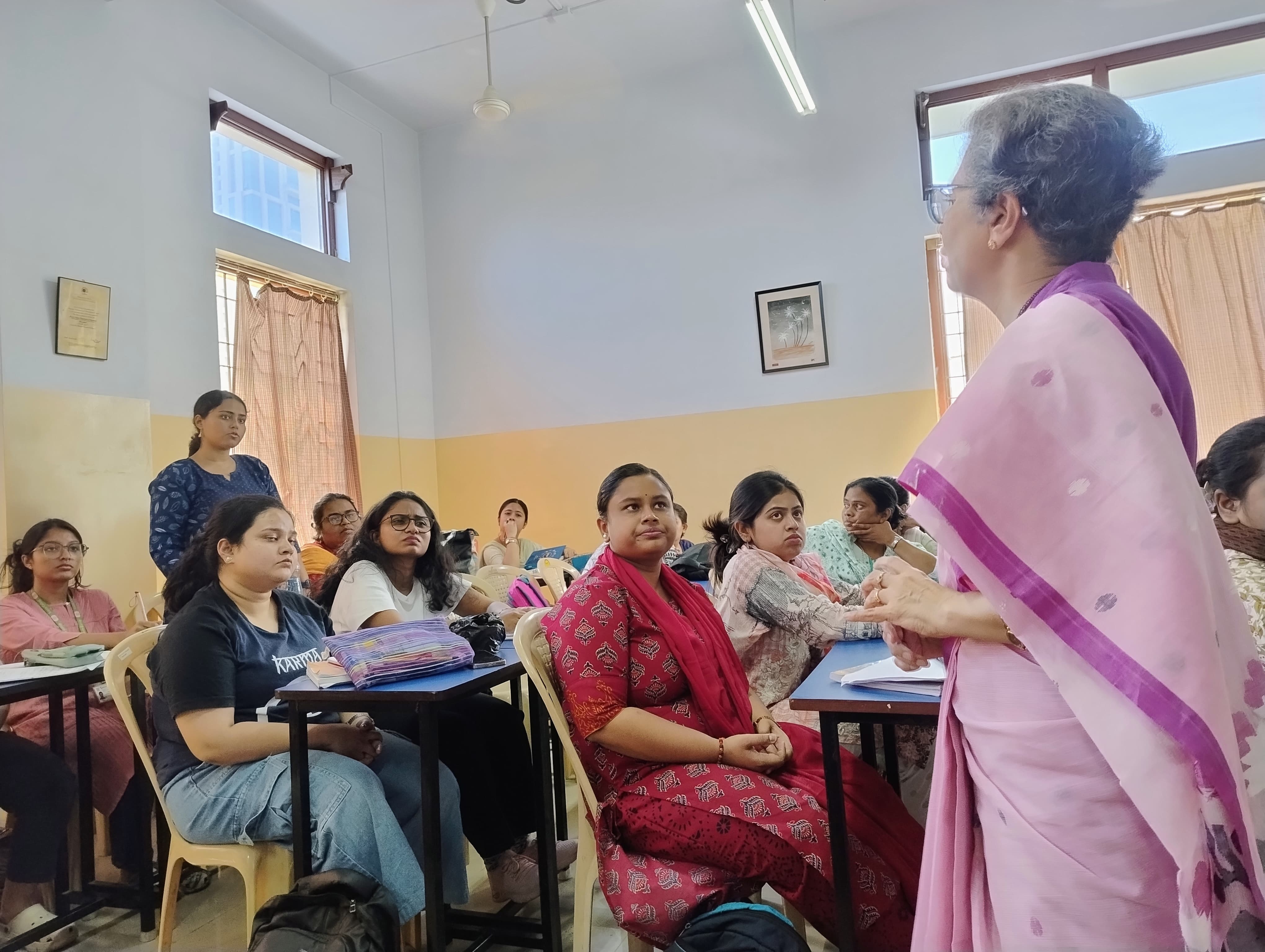 The Career Counselling Cell of Loreto College organized an interactive session on 24th March 2025, from 11 am to 12noon for the fourth-semester students of the Department of B.Ed. The session aimed to prepare trainee teachers for upcoming job interviews, offering practical insights and professional guidance. Mrs. Reena Sharda, Retired Vice Principal of South Point School (Primary Section), was the esteemed resource person for the event.