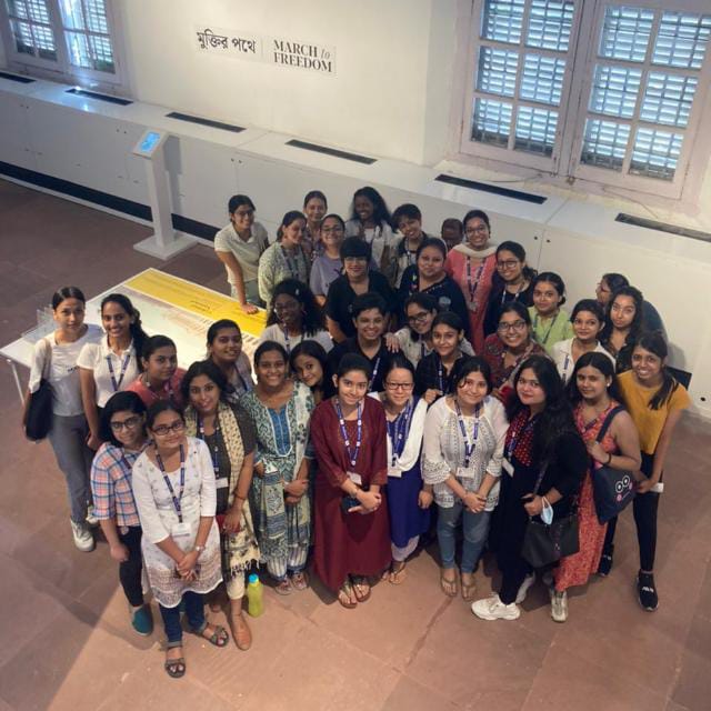 On August 31, 2022, thirty-nine Semester V students from Loreto College's Department of Political Science embarked on a study tour to the Indian Museum in Kolkata. The primary objective of this visit was to explore the "March to Freedom: Reflections on India's Independence" exhibition, curated by Mrinalini Venkateswaran and organized by DAG New Delhi at Indian Museum, Kolkata.