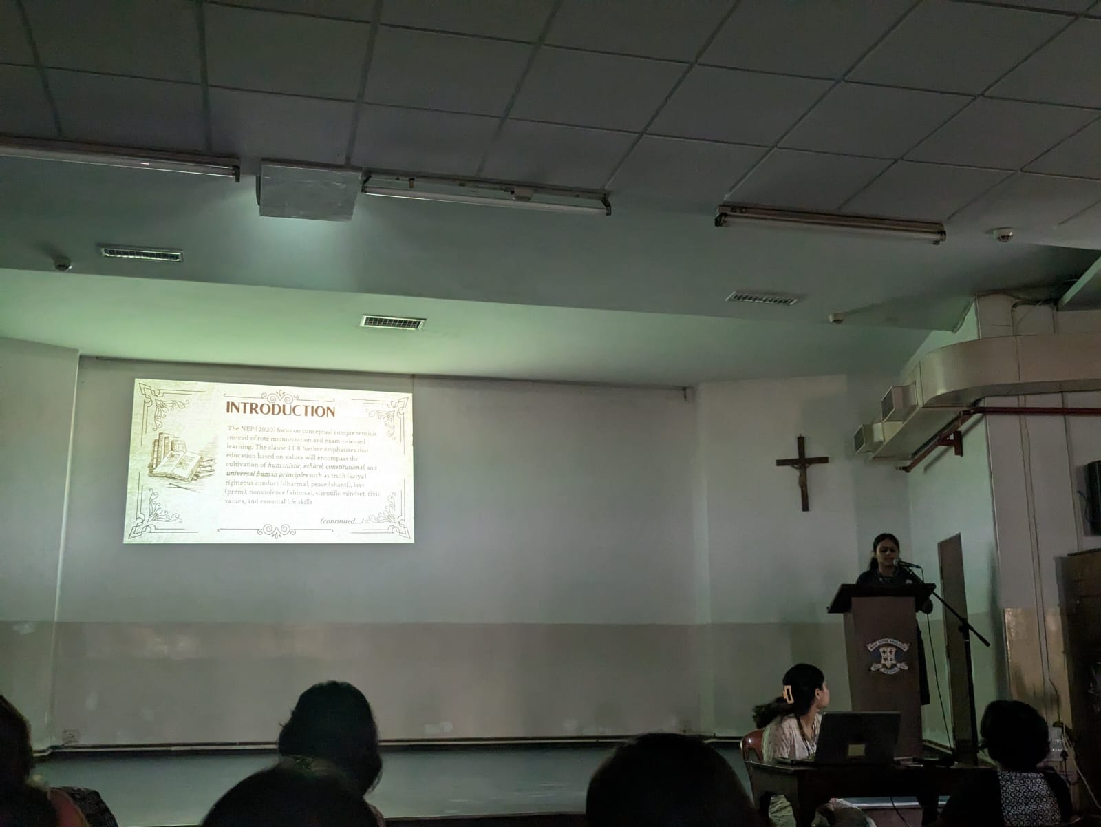 The third research group comprising Kaushiki Chakraborty and Shriyaa Gangoli presented their paper entitled "Ellora: a Study of the Synthesis of Religion and Society in Ancient India" under the guidance of Dr. Anindita Bandyopadhyay and Dr. Suparna Ghosh. Their Aim was to identify if the coexistence of the three major religions, Buddhism, Jainism and Hinduism resulted in the dominance of any particular religion, or was it a harmonious balance. The fourth presentation was delivered by Suriti Dutta under the guidance of Dr Suparna Ghosh and Ms. Tania Mondol. Her paper titled "Influence of the Values taught by Ramayana and Mahabharata in Education". Her paper investigates how the teachings of the Ramayana and Mahabharat can be integrated into the Indian knowledge based system and to promote holistic development among pupils.