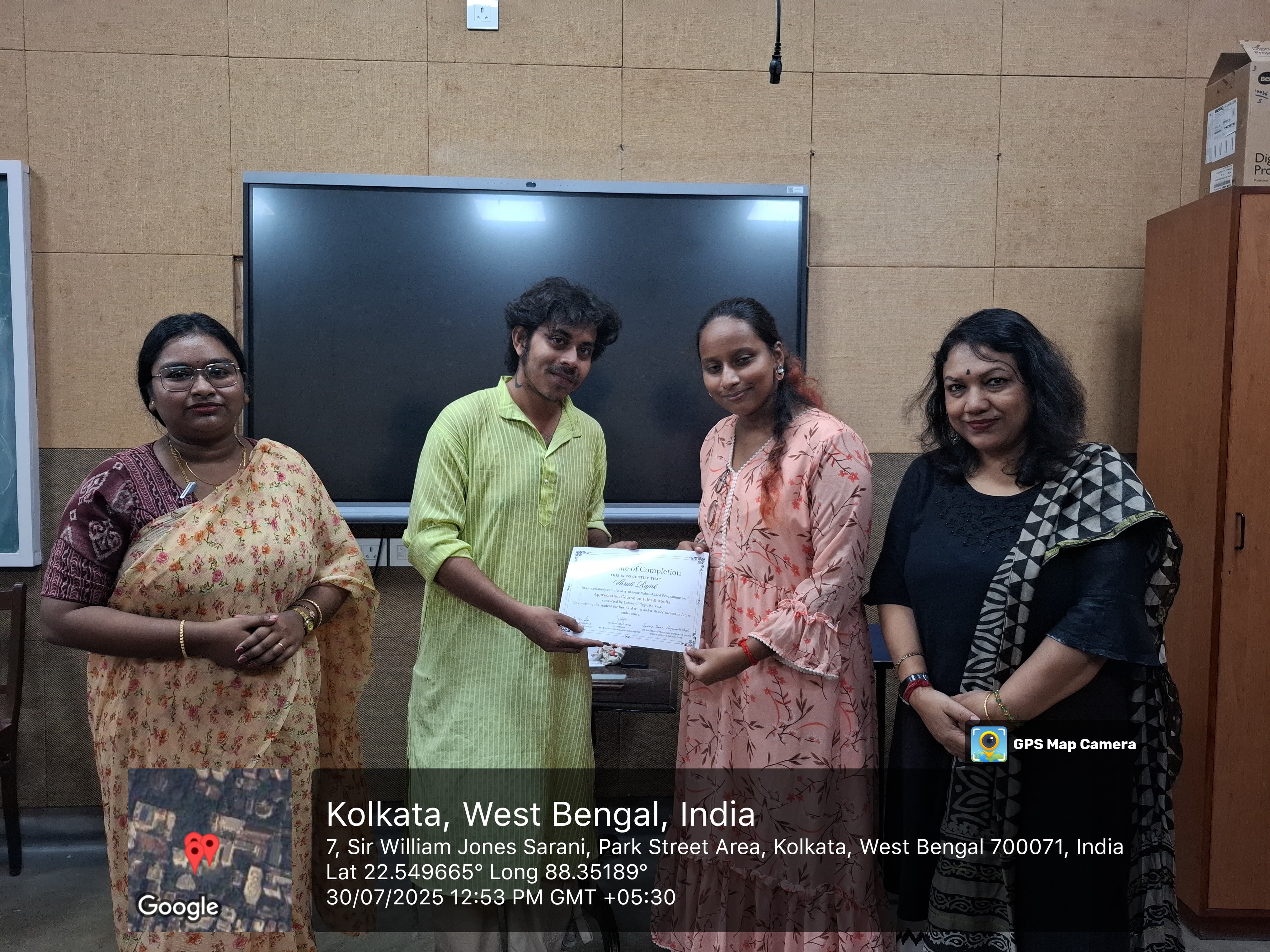 On July 30, 2025, certificates were awarded to all students who completed the Value-Added Programme in Film and Media Appreciation, organised by the Departments of Film Studies and Journalism & Mass Communication.