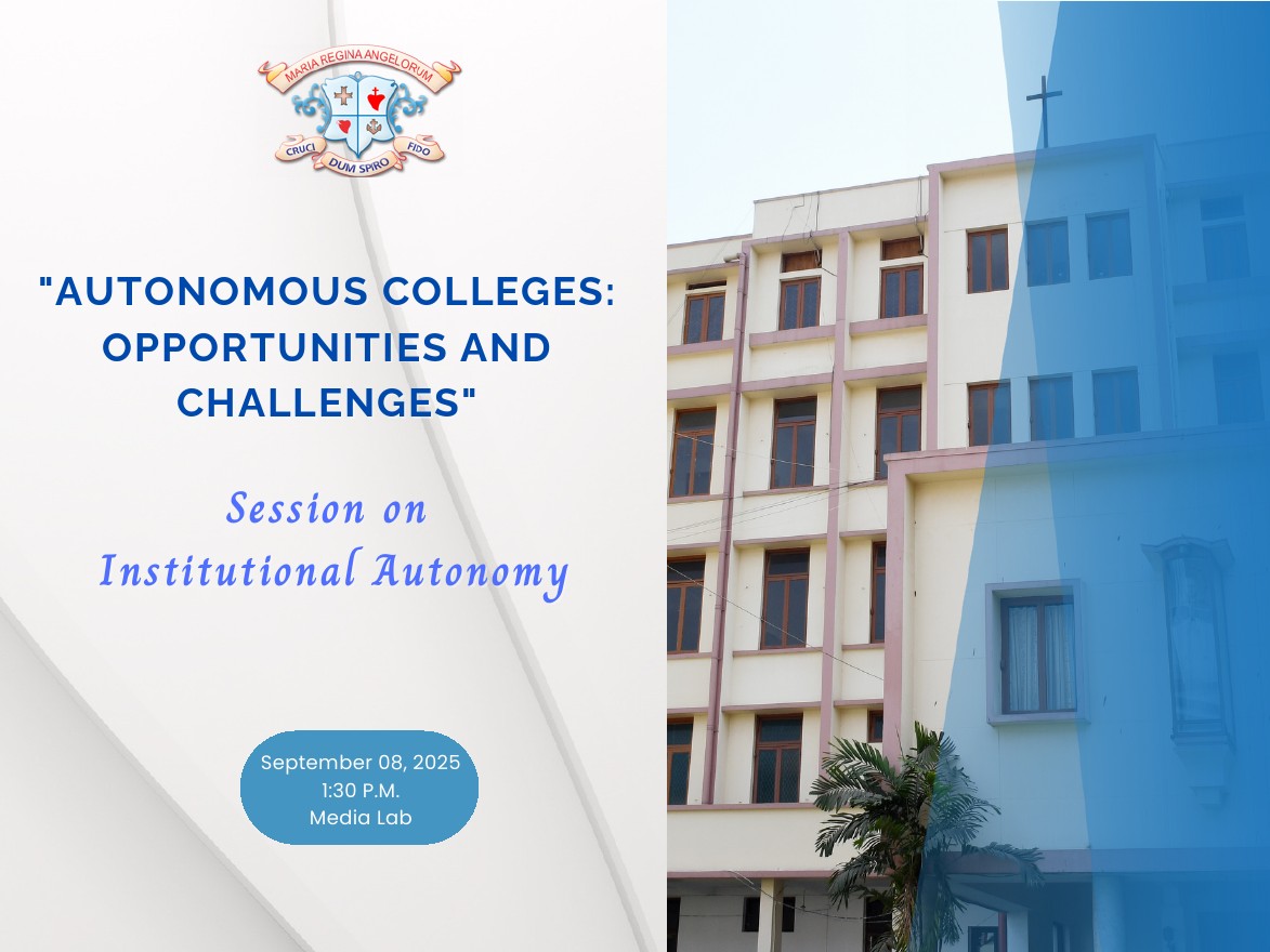 A session on "Autonomous Colleges: Opportunities and Challenges" was organized on September 8, 2025 with the objective of sensitizing stakeholders to the regulatory framework, institutional requirements, and quality benchmarks associated with attaining autonomous status. The session was graced by Sr. Monina Suchiang, Provincial of the South Asia province, Mrs. Nandini Nandini Bhattacharjee, Director, Loreto Education Board and Sr. Dr. A. Nirmala, Teacher-in-Charge, Loreto College whose guidance and encouragement added value to the discourse.