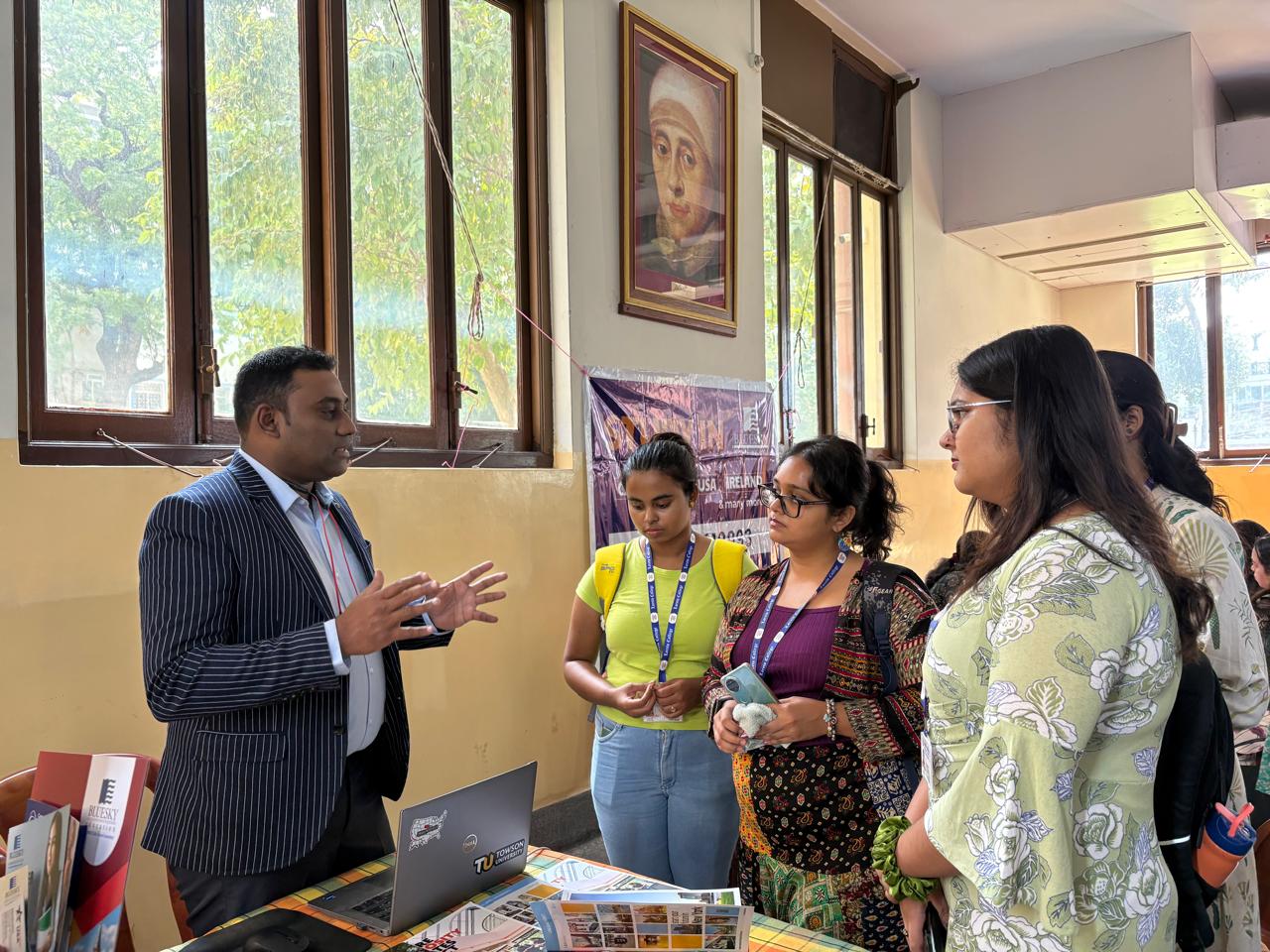 The Career Counselling Cell, Loreto College in collaboration with Blue Sky Educational Services Pvt Ltd organized an Overseas Education Career Fair at Loreto College on 7 November 2025. Addressing the current need of the youth being employment-ready, several university representatives emphasized the viability of enrolling in courses that would give graduates the skills to work in the corporate sector or to become entrepreneurs. Increasingly popular courses like Culinary Arts, Hospitality Management and Sports Management were offered by some Swiss universities while institutions strong in research like George Washington University, University of Reading, University of Sussex, University of Sheffield, SMU Singapore and Canterbury Christchurch University showcased research opportunities to the academically inclined. Several universities from Germany, France and Italy offering professional courses in business administration, finance and hotel management participated in the fair. Over 300 students enthusiastically took part in the interactive sessions with various universities. Students enrolled in undergraduate courses, post graduate courses and the B.Ed addressed their queries to the university representatives which ranged from academics and visa requirements to scholarships and work opportunities. ETS India, the conducting body of the TOEFL and GRE examinations also received a large number of queries. Some students enquired about study opportunities in Scandinavian countries, the Netherlands, Hungary and the Czech Republic where tuition fees were lower than other parts of Europe. ‘It was a very fruitful and productive interaction between the college students and the universities that made us understand the academic and financial needs of the student body ’ said Samarjeet Saha, Outreach Coordinator (Schools and Colleges), Blue Sky Educational Services