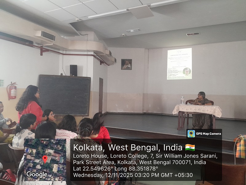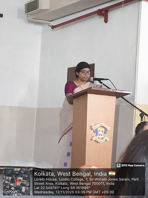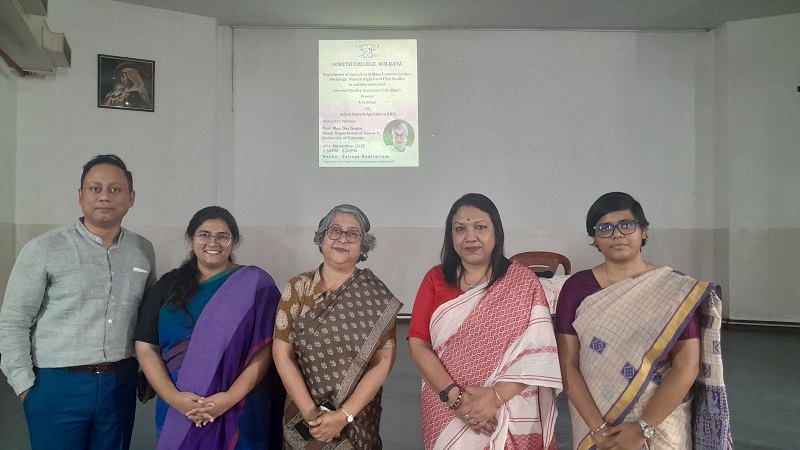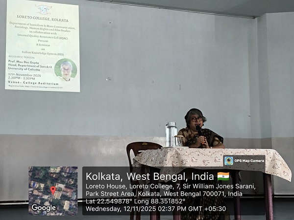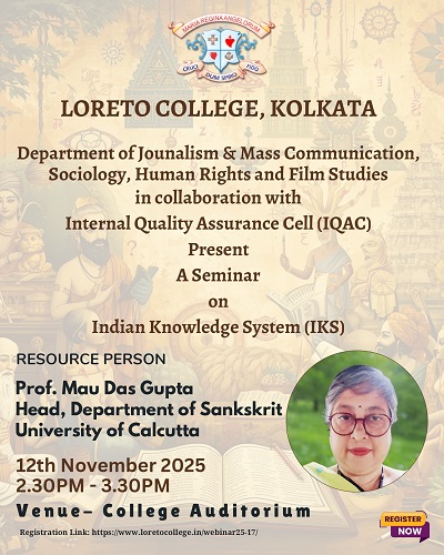 The Departments of Journalism and Mass Communication, Sociology, Human Rights and Film Studies, in collaboration with the Internal Quality Assurance Cell (IQAC) of Loreto College, organised a seminar on the Indian Knowledge System (IKS) on 12 November 2025. The session was conducted by Professor Mau Das Gupta, Head of the Department of Sanskrit, University of Calcutta.