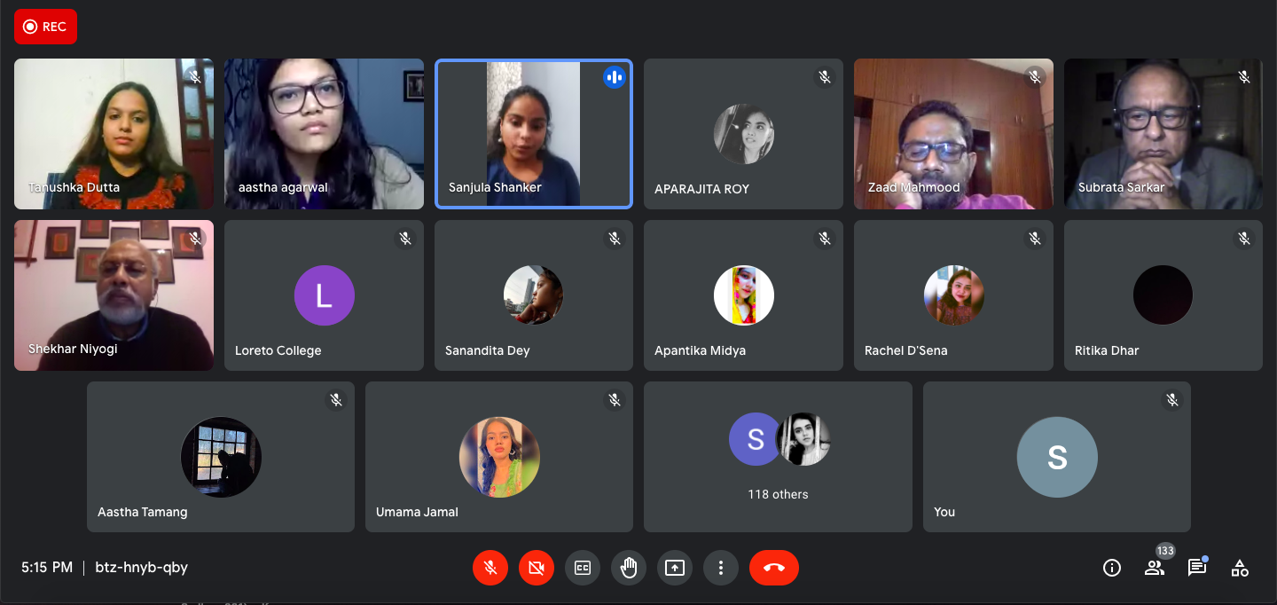 To commemorate Constitution Day 2021, the College organized an intra college debate on December 13, 2021. The debate was conducted over Google Meet. The motion before the house was The Constitution of India is the most comprehensive document to be adhered by for the functioning of the country. Two teams comprising three students each, argued eloquently giving the audience much to ponder upon. The winning team was side Opposition, Meghna Bhattacharya (1st year Political Science Honours), Tanushka Dutta (3rd year English Honours), Ashwriya Malik (3rd year English Honours). Ritansha Banerjee (3rd year Political Science Honours) and Meghna Bhattacharya were jointly declared Best Speaker and Aishwriya Malik was judged as the runner up. The judges were Dr Zaad Mehmood. Assistant Professor, Department Political Science, Presidency University, Mr Shekhar Niyogi, Editor and Consultant - Tourism, Education and Media and Mr Subrata Sarkar, former senior executive, SBI currently senior faculty of Bandhan School of Development Management.