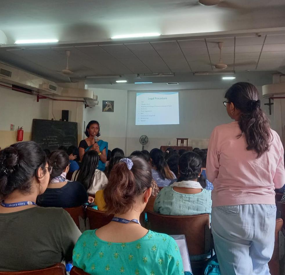 In an effort to empower young women, Loreto College held a Legal Awareness Workshop for all final-year students on February 25, 2023. The Workshop was conducted by Dr. Monalisa Saha, an alumna of the College, currently an Assistant Professor in the Department of Law, University of Burdwan. The main objective of the Workshop was to introduce students to the many substantive, procedural, and evidentiary laws that are currently in force in India, especially those that deal with the defence of the rights of women and children. Through this workshop students were imparted helpful knowledge on how they may respond instantly if their rights are violated. Students were given an overview of important laws such as IPC 1860, Cr.P.C. 1973, POSH 2013, and POCSO 2012.