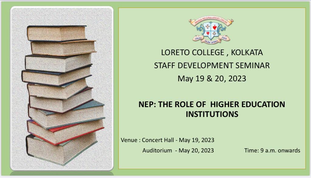 A Staff Development Seminar was held on May 19 & 20, 2023 on NEP: The Role of Higher Educational Institutions. The new National Education Policy (NEP) 2020 seeks to revolutionize the face of Indian education to match global standards and equip the youth with the right skills and values. It is ambitious and bold in its determination to make education more comprehensive, flexible, skill-based, multidisciplinary, and holistic.