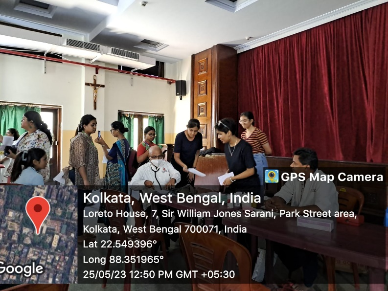 On May 25, 2023, a Blood Donation Camp was organized by the National Service Scheme (NSS) Society, Social Service Society, and AICUF in the Loreto College campus, in collaboration with the Lions Club of Calcutta, Mahanagar and Lions Clubs International District 322B1. The camp is conducted every year to generate awareness and encourage all healthy adults to donate blood for those in need. Individuals who were between 18 to 60 years of age and who weighed over 45 kgs were considered eligible for donation. They also had to answer a few additional questions and undergo a haemoglobin test before they were deemed fit to donate blood. The camp successfully registered 64 donors for the campaign, including students from all the years, their family members, and even the Principal of Loreto College, Sr. Dr. Christine Coutinho. The doctors, nurses, and Society volunteers ensured that each donor took adequate rest and food before resuming their regular activities. The programme was successful due to the dedicated efforts of the organisers and the selfless generosity of the donors.