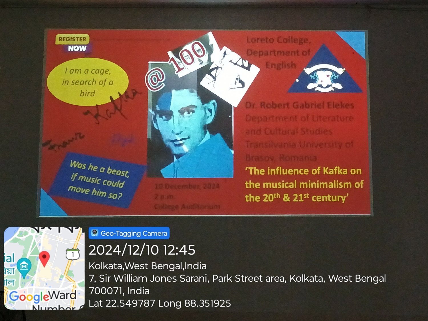 On December 10, 2024, the Department of English, Loreto College, Kolkata organised a special programme to commemorate the centenary of Franz Kafka's death. The programme was conducted in a hybrid mode and attended by the UG and PG students and the faculty of the Department of English, Loreto College.