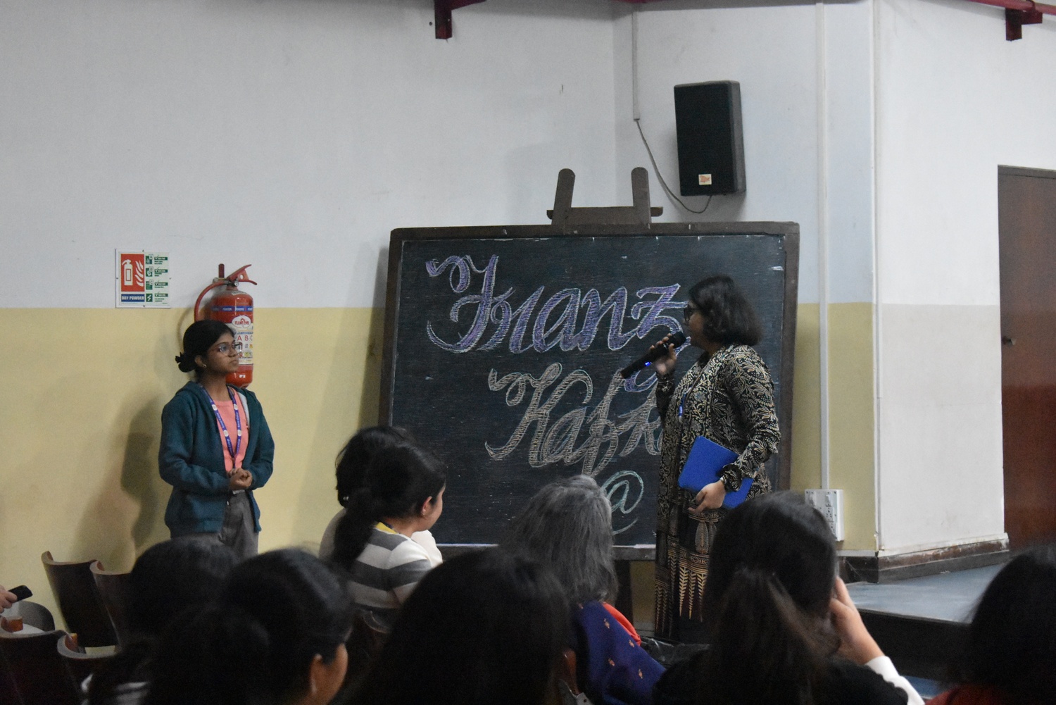 The first segment featured four student paper presentations. Somoshree Palit's (Semester I, PG) paper entitled "Death, the Performer: The Living Dead in Kafka's Parables" focused on the "inertia" of Kafka's characters, their redundant journeys, and the performative status of their deaths. Soumiti Das's (Semester V, UG) paper, "The Unsettled: Alienation and the Grotesque in Kafka and Bacon," drew on the confrontation of identities in a disjointed world, juxtaposing the frustration and self-alienation found in Kafka's writings with the deconstructed strokes and distorted figures of Bacon’s paintings. Anandi Chanda’s (Semester III, UG) "Orientalism and the Civilising Mission: Kafka's Penal Colony" read Kafka's "In the Penal Colony" in relation to the British Empire and interpreted it as an oblique critique of imperialism and colonisation. Finally, Bhuvi Sharma's (Semester III, UG) presentation on "Kafka and the Dionysian Spirit" examined Kafka's Artist through the lens of rapturous Dionysian rituals and art's all-consuming nature.